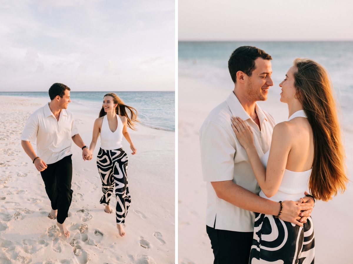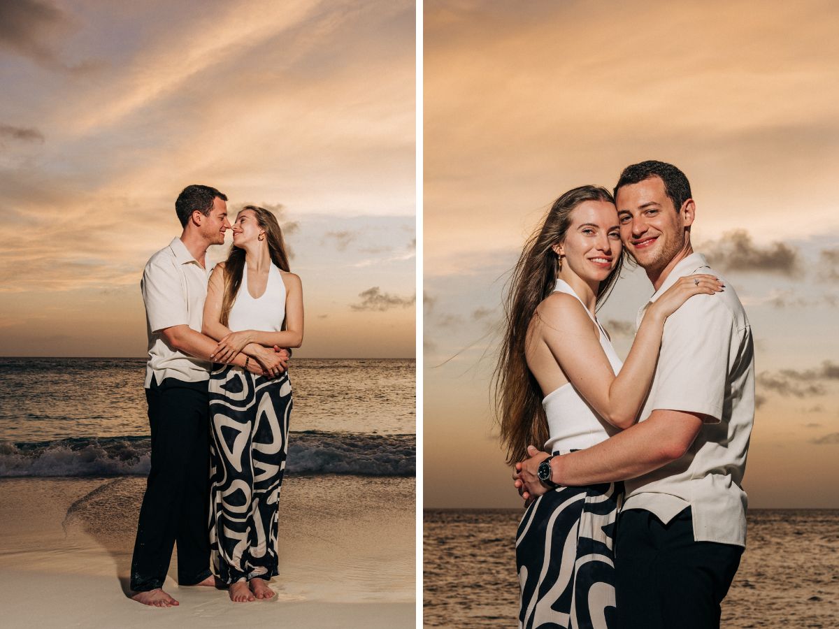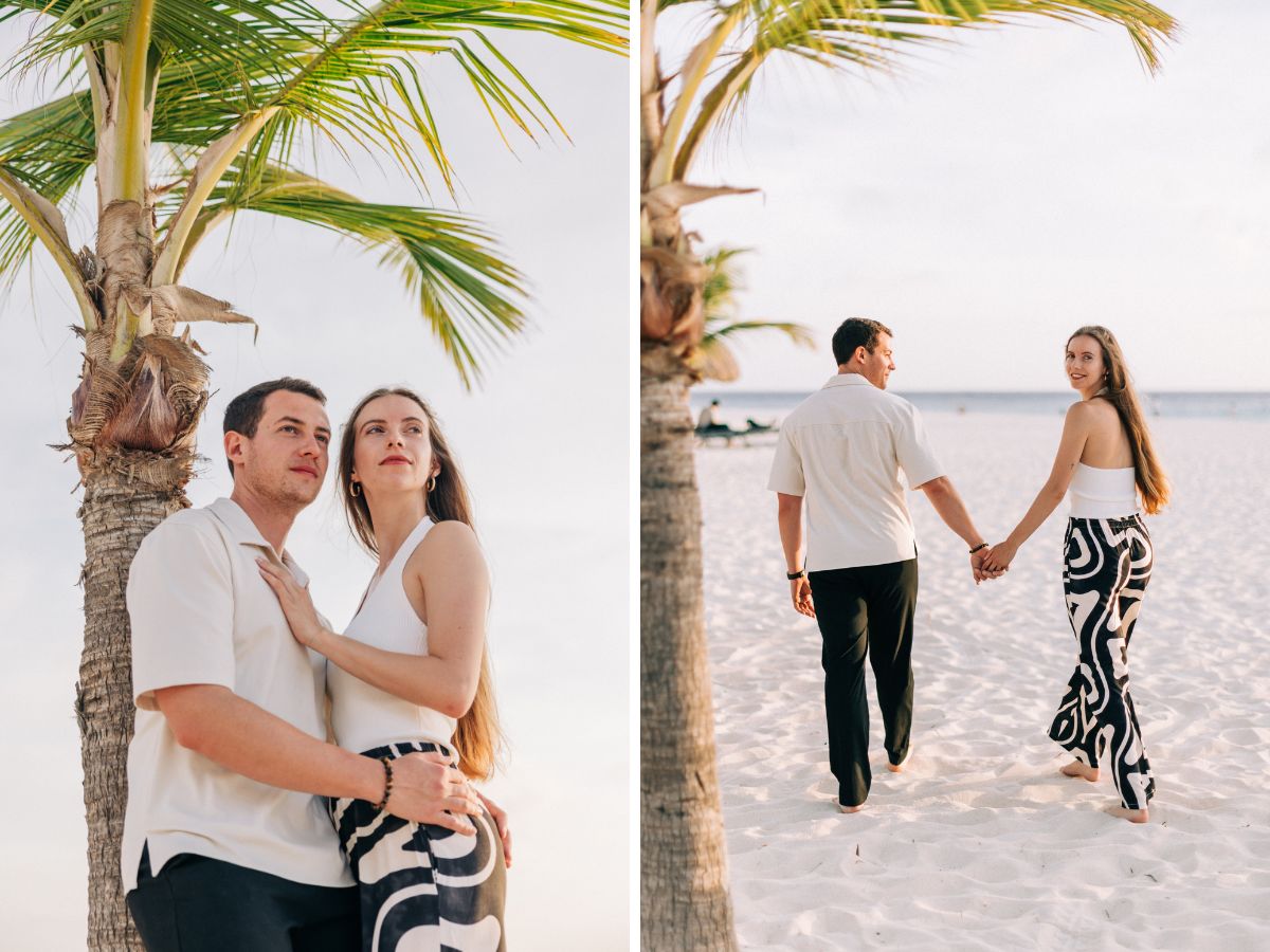 Roberto reached out to me just two weeks before their trip and shared his plan to propose during golden hour at Manchebo Beach, Aruba — one of the island’s most stunning spots for an Aruba proposal on the beach.
