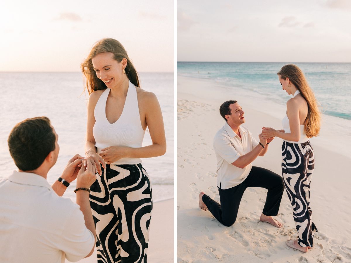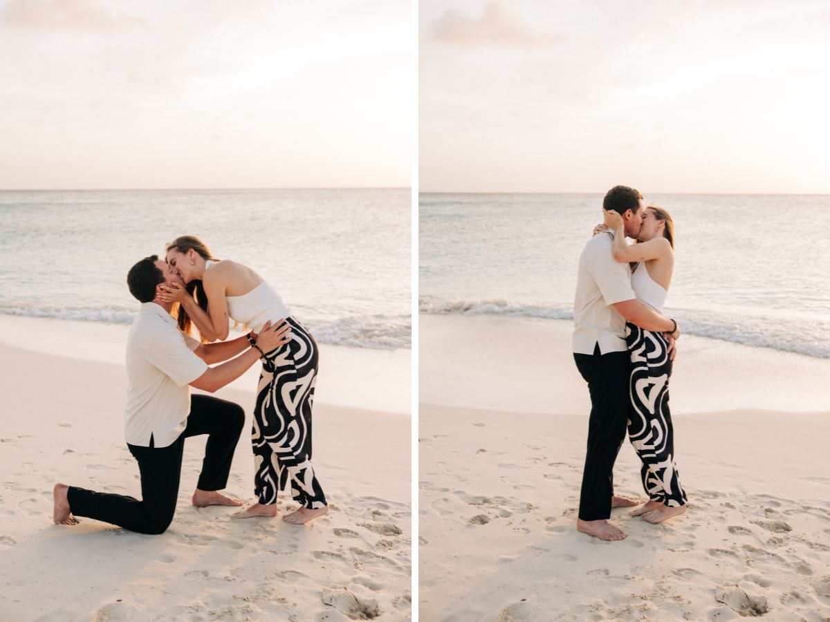 The Big Moment: A Magical Sunset Proposal at Manchebo Beach
