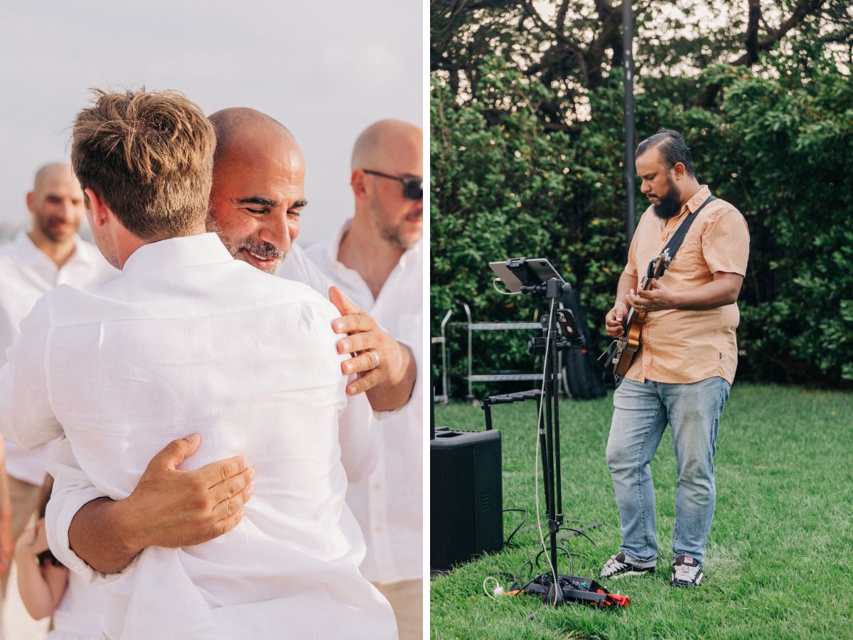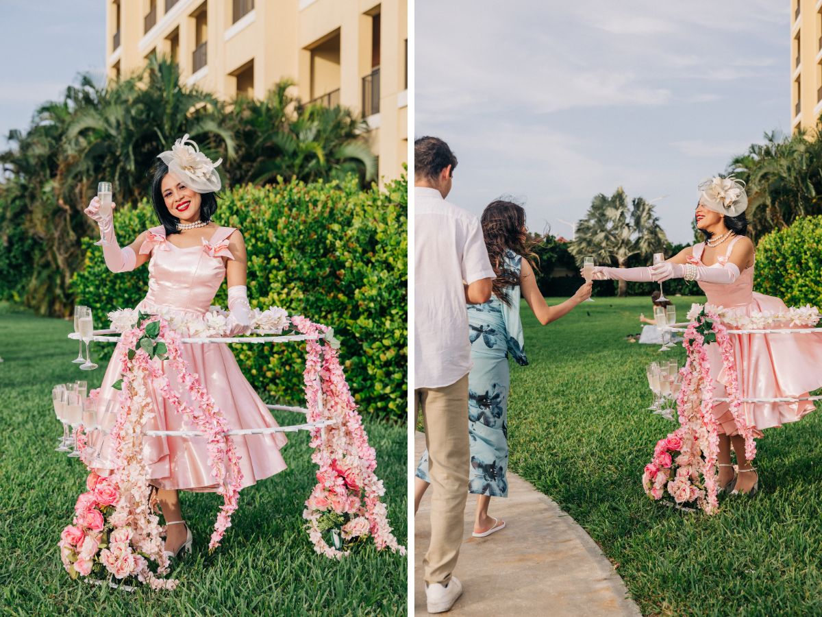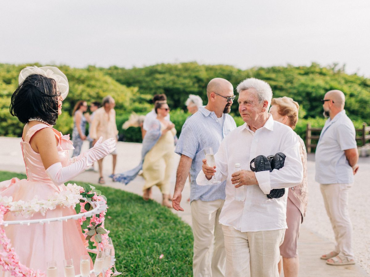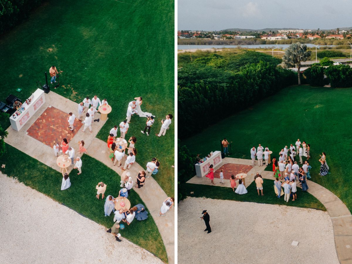 After the ceremony, guests moved to the lawn area of The Ritz Carlton Aruba for cocktail hour. The atmosphere was relaxed and joyful, with gentle ocean breezes and the soft glow of sunset creating the perfect backdrop. The in-house planners ensured everything flowed smoothly, letting everyone soak in the moment without a hitch. As an Aruba wedding photographer, I love these moments because the natural light and candid smiles make for some of the best shots.