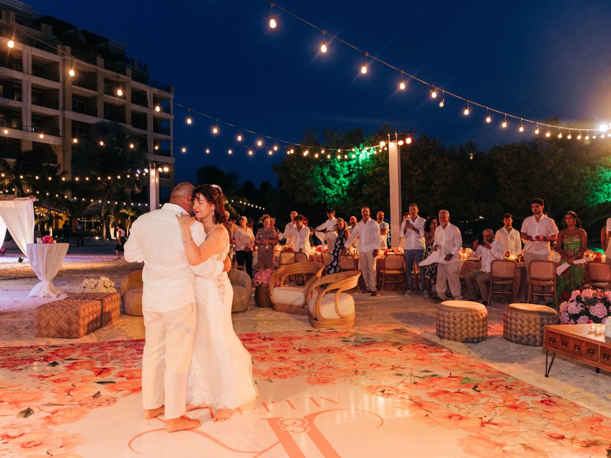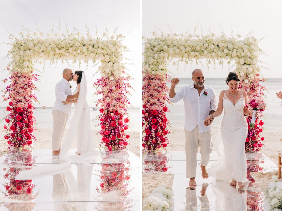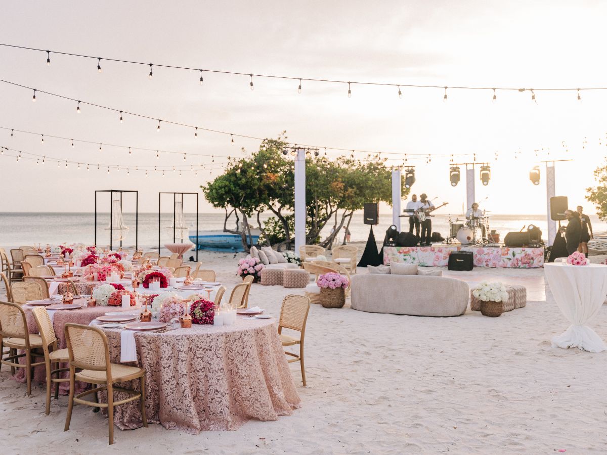 The reception was held right on the beach, perfectly blending the casual elegance of Aruba with Kerry and John’s personal style. Pink was the star color here, from the floral arrangements to the delicate table linens and shimmering copper accents. The attention to detail was remarkable—every element worked together harmoniously to create a romantic yet fun party vibe. I even caught a few dance floor moments that had everyone laughing and letting loose, reminding us all why weddings are such a joyous celebration.